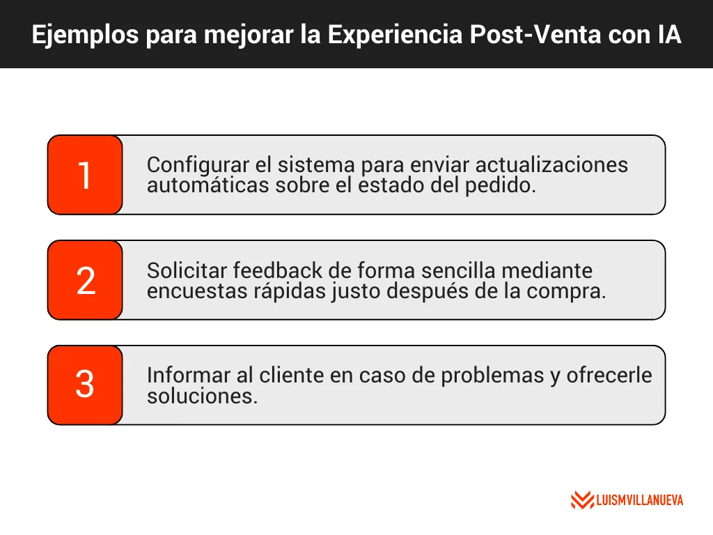 Al usar la IA para mantener una comunicación eficiente y personalizada después de la compra, no solo resuelves problemas, sino que creas experiencias memorables que fomentan la fidelidad de tus clientes.