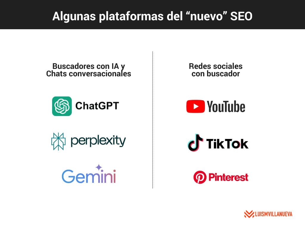 Por un lado, aparecer en los Modelos de Lenguaje Grandes (LLMs) como ChatGPT y Gemini. Y por otro, en redes sociales con funciones de búsqueda como TikTok, YouTube y Pinterest.