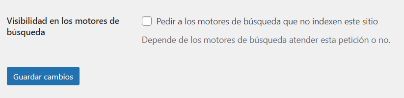 ⚠️ Otra opción importante, que aunque venga por defecto, debes cerciorarte de que está desmarcada correctamente es la de «Pedir a los motores de búsqueda que no indexen este sitio». Esta opción debe estar desmarcada siempre, la puedes encontrar en Ajustes >> Lectura.