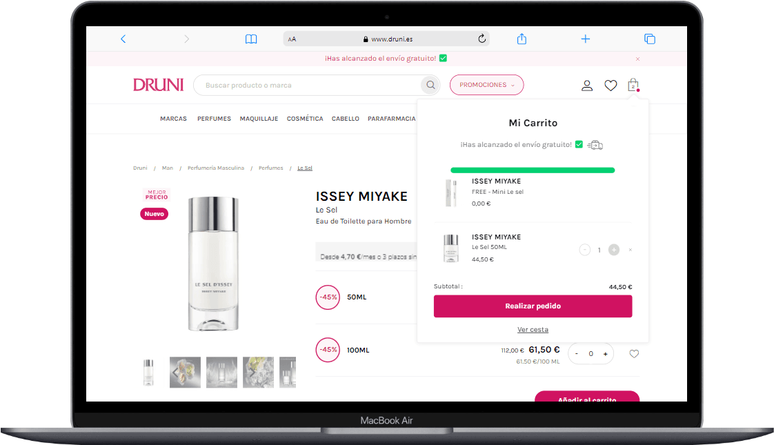 Imagina que la web de tu competencia ha optado por eliminar la URL del carrito y la ha sustituido por una ventana emergente que aparece desplegada al hacer clic en el icono de la cesta.