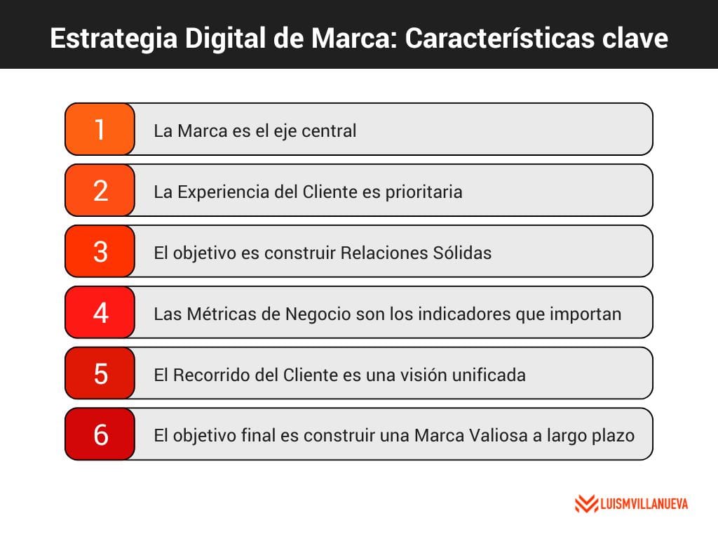 La Estrategia Digital de Marca (EDM), por otro lado, representa una evolución necesaria del marketing digital, con una perspectiva mucho más amplia y centrada en la construcción de valor a largo plazo para la marca y el negocio. Sus pilares fundamentales son: